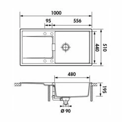 > Longueur évier : 100 cm