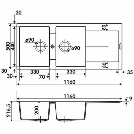 > Équipements inclus : bonde(s), siphon, trop plein, tuyaux d´évacuation