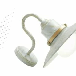 Applique en aluminium moulé sous pression et acier peint. Diffuseur en verre dépoli. Hauteur maximale de la lampe : 140 mm. Alimentation 230 V ~ 50 Hz. Classe de protection : IP44 Puissance maximale de la lampe : 60 W