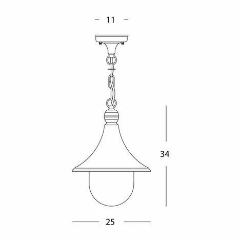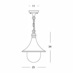 Lampe à Suspension pour le jardin sovil LAMPARA de couleur Cuivre (Rouille), en fonte d’aluminium. Diffuseurs en thermoplastique transparent. Câble d’alimentation électrique H05RN-F 3G1. Max hauteur de la lampe: 150 mm. Alimentation 230 V ~ 50 Hz. Degré de protection IP43. Lampe E27 (non inclus) puissance Max 60W, taille: 34x25cm.