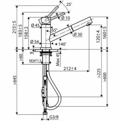 > Hauteur mitigeur : mi-haut 20>30 cm