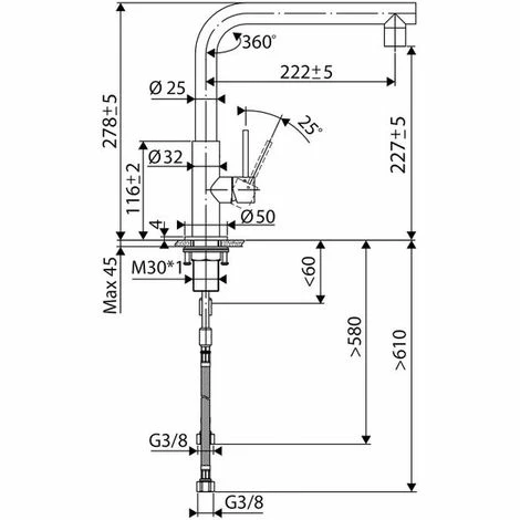 > Hauteur mitigeur : mi-haut 20>30 cm