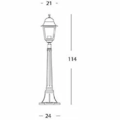 Bâton de jardin bas avec lanterne carrée en aluminium moulé sous pression anticorrosion et diffuseurs en verre transparent. Il est possible de monter des lampes à incandescence ou à économie d’énergie d’une hauteur maximale de 210 mm. Equipé d’un triangle pour la fixation au sol. Support de lampe : E27 Puissance maximale de la lampe : 100W Indice de protection : IP43 Hauteur : 114 cm Diamètre de la base : 24 cm Diamètre de la lanterne : 21 cm